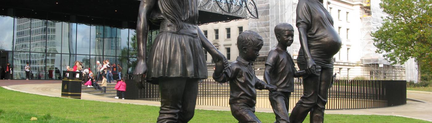 Now, I come from Birmingham. In my youth it was a tightly conventional city, but that’s changed, and I never realised how much it has changed ’til I saw that the ‘city elders’ had commissioned Wearing to produce a statue for the New Birmingham Library. Her bronze is called ‘A real Birmingham Family’ and it depicts what appear to be two sisters holding the hands of two small boys, for in this family there are no men.